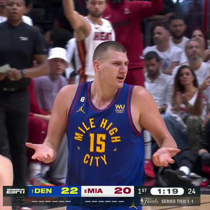 懊恼!约基奇不满判罚对裁判摊手