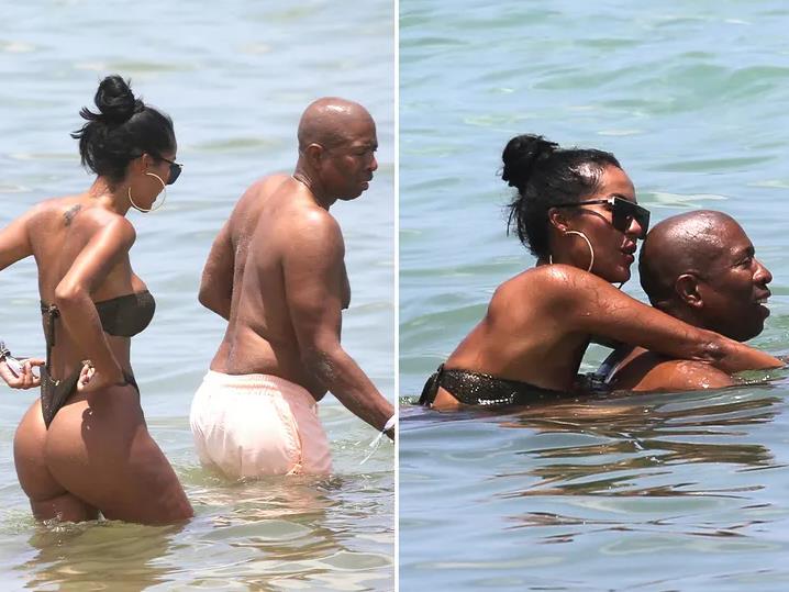 Live Bar, June 30 -kenny Smith, a former NBA player and a member of the TNT Sky Group, appeared in Miami Beach with Brazilian Internet celebrity model Aline Bernardes and behaved very closely.