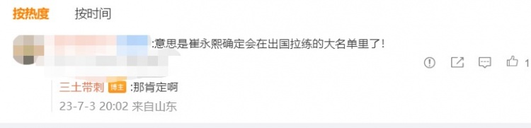 In addition, when interacting with fans in the comment area, the media people said that Cui Yongxi would be on the follow-up list of overseas training.