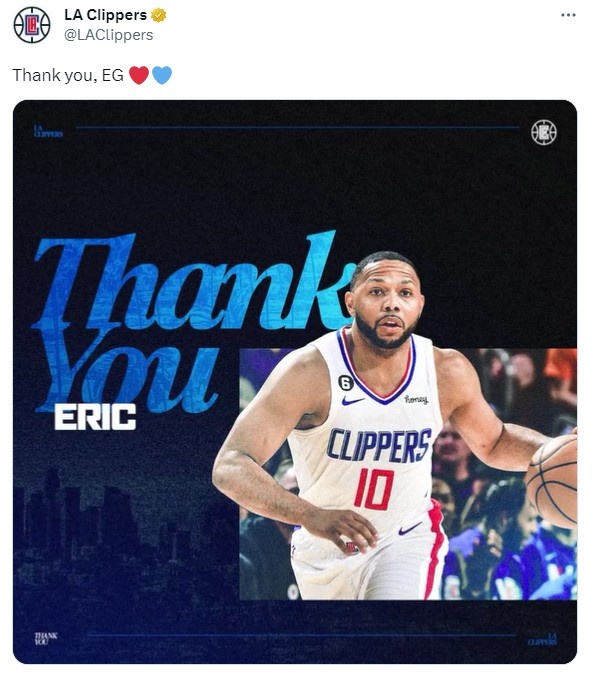 Today, Clippers officially sent a message to thank Gordon, “Thank you, EG.❤⊙💙”